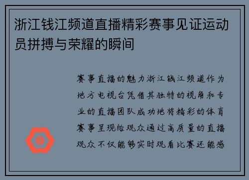 赛事概述与精彩回顾 陕西1直播为广大观众呈现了一场场精彩绝伦的体育赛事,充分展现了运动员们的拼搏精神与荣耀时刻。赛事中,运动员们在赛场上挥洒汗水,奋力拼搏,展现出超凡的竞技水平和不屈的意志。通过陕西1直播,观众不仅能够实时观看比赛,还能感受到运动员们在比赛中所付出的努力与坚持。本文将从赛事的精彩瞬间、运动员的拼搏精神、观众的热情支持以及赛事的影响力四个方面进行详细阐述,带领读者回顾这些难忘的时刻。...