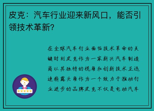 赛事精彩瞬间回顾 汕头作为一个充满活力的城市,近年来在体育赛事方面取得了显著的进展。通过汕头新闻直播,我们能够实时捕捉到本地体育赛事的精彩瞬间,展现运动员们的拼搏精神和风采。这些赛事不仅丰富了市民的文化生活,也为年轻运动员提供了展示自我的平台。本文将从赛事回顾、运动员风采、观众互动和未来展望四个方面,详细阐述汕头新闻直播如何聚焦本地体育赛事的精彩瞬间与运动员的风采。 赛事回顾与亮点 在过去的一年...