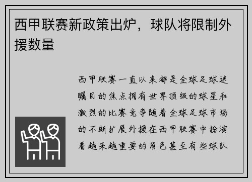 在刚刚结束的欧洲比赛中,西甲球队维拉雷亚尔遭遇了一场惨痛的失利,双双出局的结果让人们对这支西甲劲旅的未来充满疑虑。作为西甲的一支中坚力量,维拉雷亚尔在欧洲赛场上的表现一直备受瞩目。2024赛季的欧洲比赛却让球迷们失望不已,这不仅影响了球队的士气,也让西甲球队在整个欧洲赛场的表现堪忧。 维拉雷亚尔在本赛季的欧洲联赛中,遭遇了强劲的对手,尽管球队在西甲联赛中的表现还算稳定,但在欧洲赛场上的屡次失利却暴...