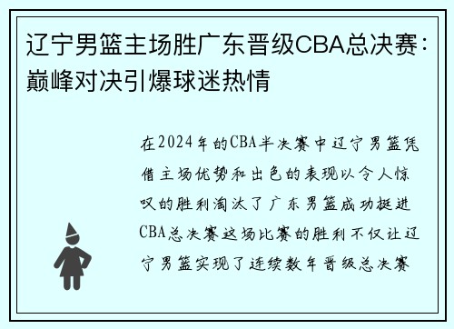 2024年CBA总决赛的落幕,广东宏远队再次用实力证明了他们在中国篮球联赛中的霸主地位。这支由杜锋指导的球队在总决赛中以4:2的总比分战胜辽宁飞豹队,捧起了队史上的第十二座总冠军奖杯。宏远队的胜利不仅体现了他们强大的团队协作能力,更展示了他们在攻防两端的全面优势。 在总决赛的关键第六场比赛中,广东宏远队以102:98险胜对手。这场比赛可谓是扣人心弦,双方在攻防两端展开了激烈的角逐。广东队的核心后卫...